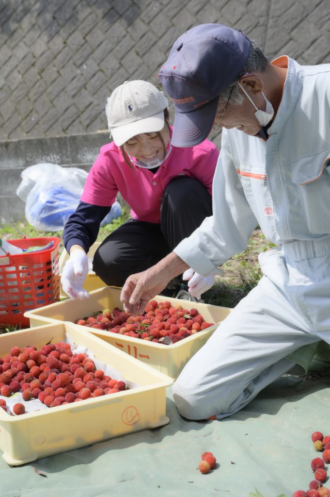 ・那珂川市内の色々な場所にやまももの木を探し持ち主に収穫についての協力をお願いする事前調整作業が大変でした。