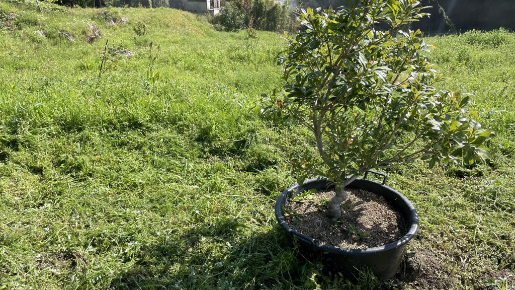・「やまももの森プロジェクト」では、山間部の耕作放棄地を整備し 平成30年から 40本の若いやまももの木を植えています。年間を通して、草刈・施肥・水やりなどの育成作業が必要です。