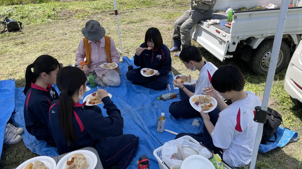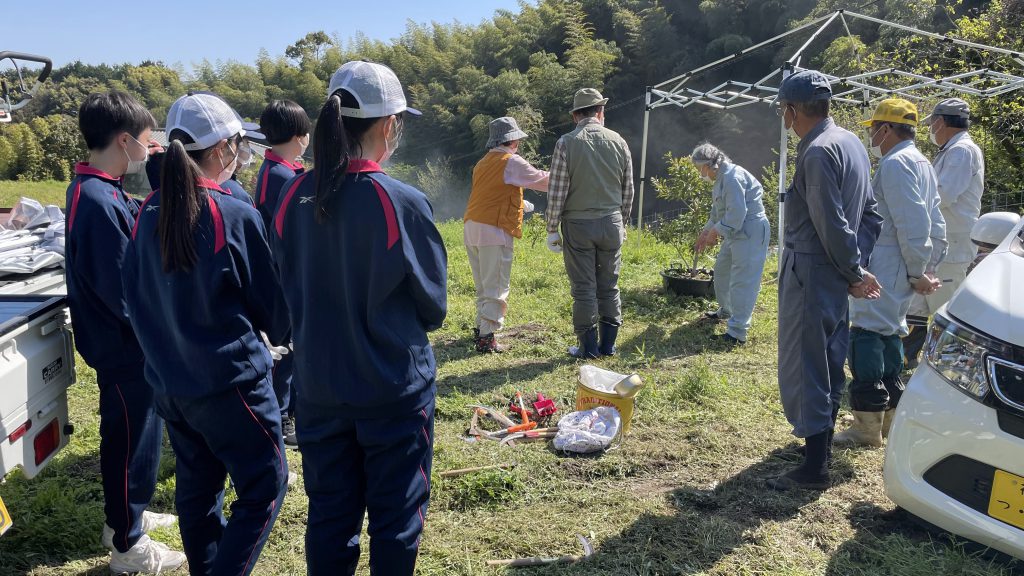 ・新規に栽培を開始したやまももの樹は将来の観光農園化を見据えて、地域の有志だけでなく次世代への引継ぎも込めて福岡女子商業高校の生徒さんや那珂川市内外のボランティアの方にも育成の作業に参加・体験してもらっっています。